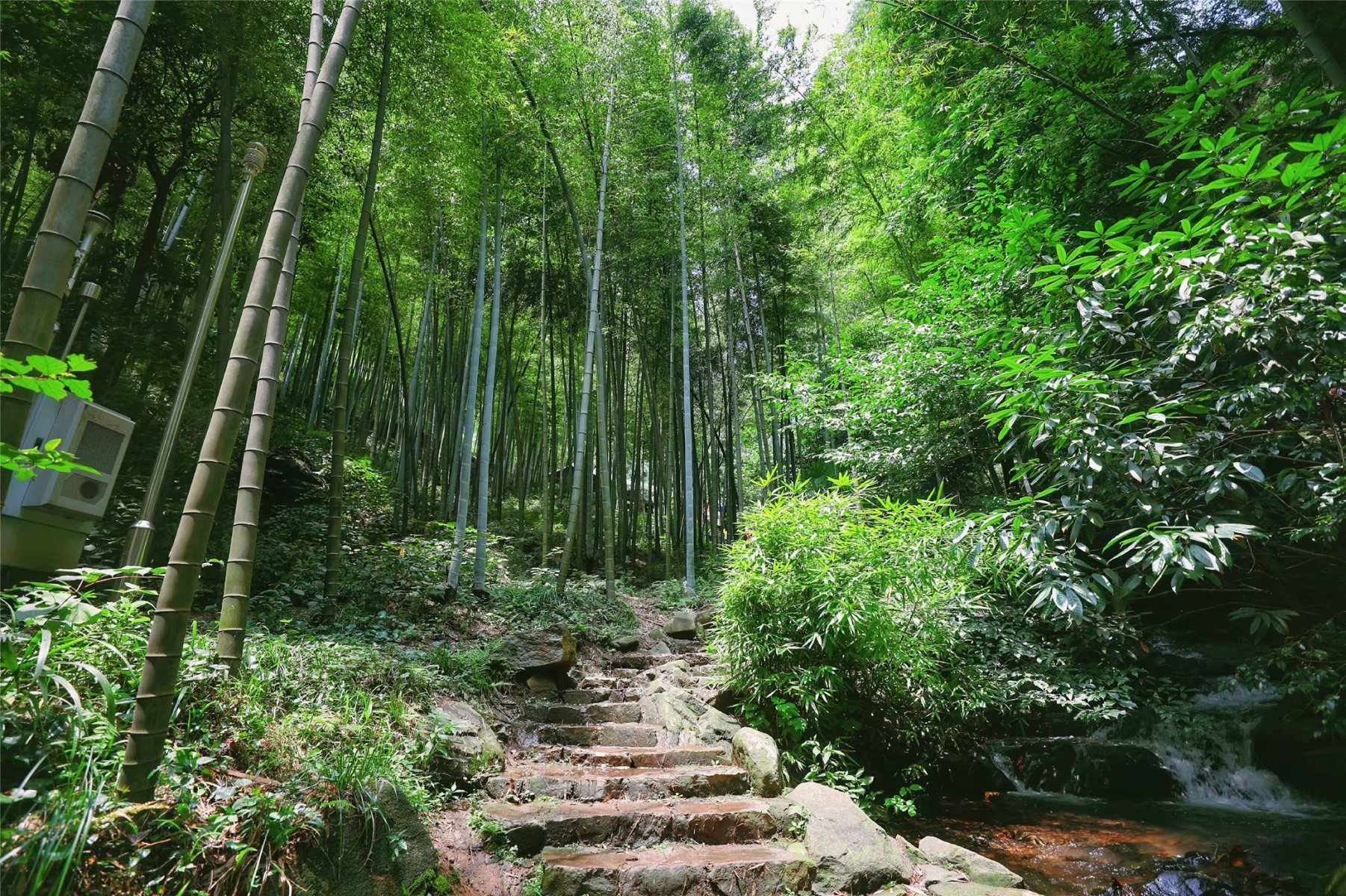 幽山,剑池,竹海。天教放晴入画,草木遍芬芳,绽放一片清凉世界。