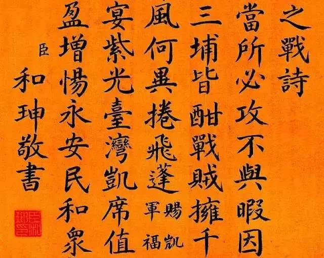 乾隆一生喜爱做诗、书法,和珅为了迎合乾隆,在这些方面下了不少工夫,并达到了较高的水平,和珅最大的“才干”就是投其所好。和珅在书法、诗文上有很高造诣,他模仿乾隆的字已经到了以假乱真的程度。