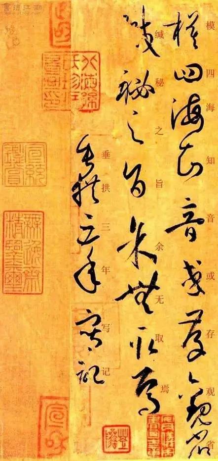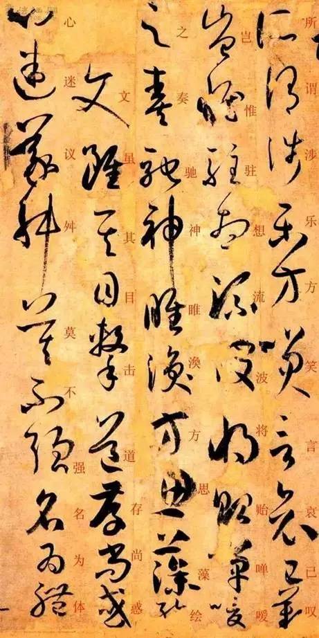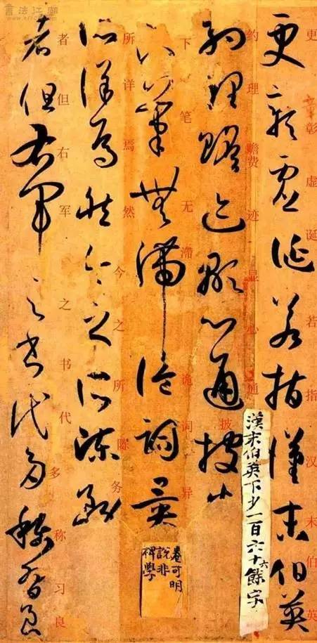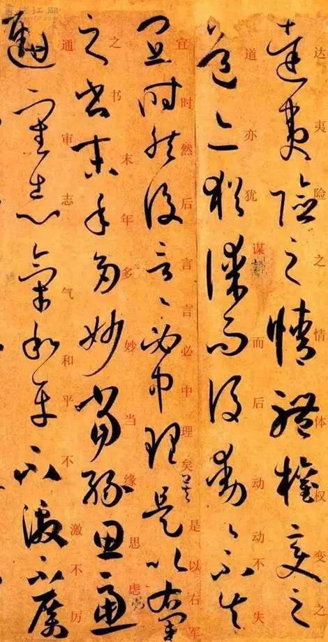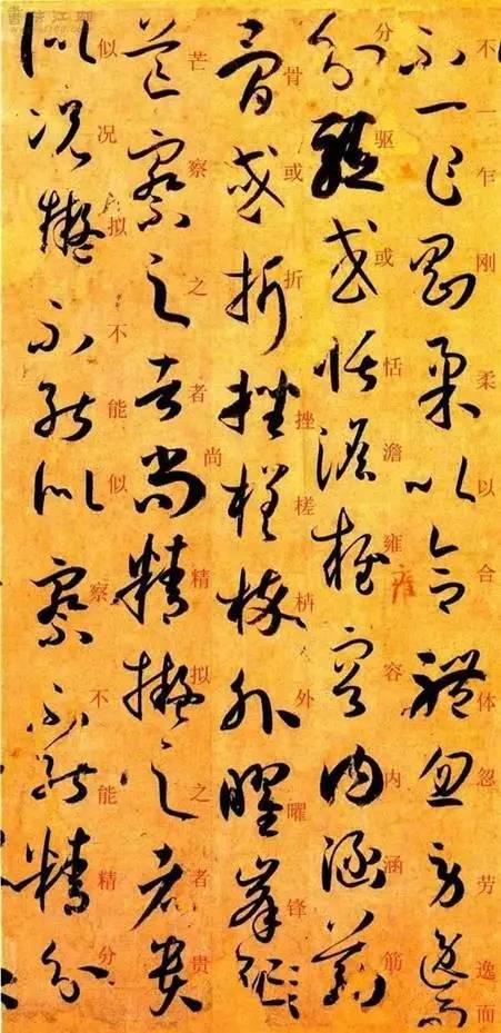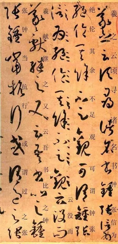 孙过庭专习王羲之草书,笔法精熟,唐代无人能与他相比。本卷纸墨精好,神彩焕发,不仅是一篇文辞优美的书学理论,也是草书艺术的理想典范。