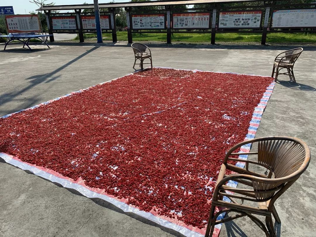 晾晒的干辣椒,是制作红油辣椒的原料。摄影/陈龙