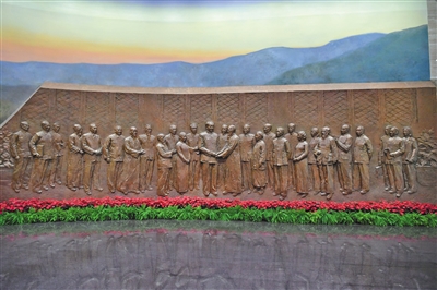 序厅两侧浮雕“渡江战役”和“共商国是”,概括中共中央在香山期间完成的两件大事:指挥解放全中国,筹备新政协、筹建新中国。