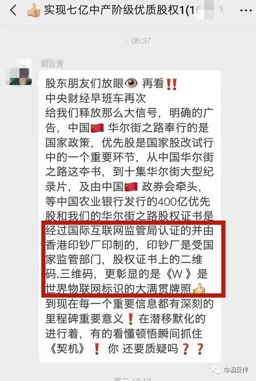 从上面这些图片中不难看出,各种“互联网项目”骗局都沾上了“物联网”的噱头,发物联网信息的人,许多都是老头子,老太太,各种版本都有,至于物联网是什么样的,他们根本不会去考证,都是以讹传讹,反正把人忽悠住,只要掏钱就行,这才是根本的目的!其中“华尔街股权”骗局,“莱信”都扯上了物联网,物联网究竟是什么?谁也不知道?谁也没有经历过,一个个也就成为了骗子的“帮凶”