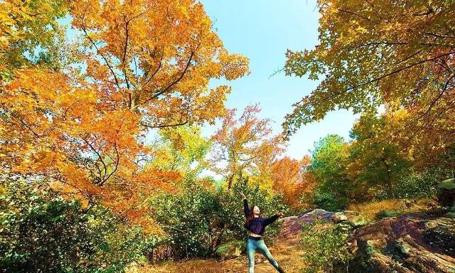 微微的秋风轻轻扑上脸庞,吸一口被层层林木筛滤过的山间空气。闲看蓝天白云,静听溪流潺潺。放松全身心,将自己完全置身于唯美绝伦的清秋时光里。