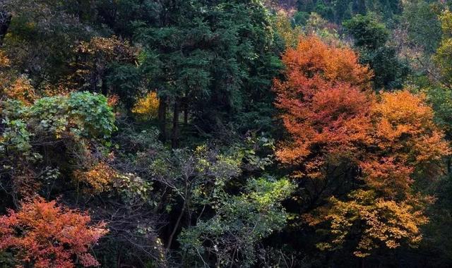"只言春色能娇物,不道秋霜更媚人",十月末,山中秋色已经渐渐来临,层林尽染。