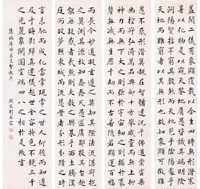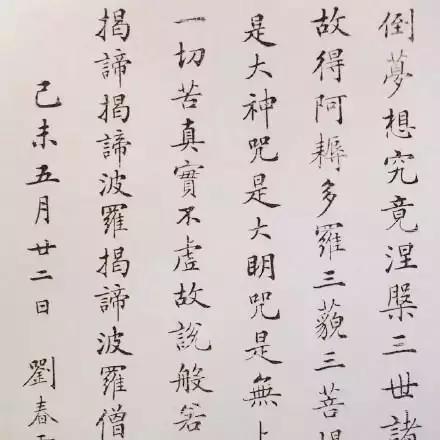 刘春霖善书法,尤以小楷为著,取法晋唐写经,清秀、挺拔、疏淡,方、圆、刚、柔浑然一体,笔致秀润稳健、流畅中寓古朴之风格,堪称一绝。故其有“楷法冠当世,后学宗之”之誉,而至今书法界仍有“大楷学颜(真卿)、小楷学刘(春霖)”之说。