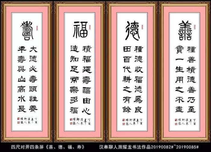 适意书写,不计工拙,作为一种书写状态,也许是不可缺少的,然而艺术的经典和大家不可能在这种状态下造就,经典和大家的出现必然是积极探索,努力攀登,孜孜不倦的结果。仔细欣赏萧耀龙老师的书作,徐以取妍,得自然融于徘徊。疾以取峻,则神奇注于笔端,观其作,自远而近,由快渐慢,相辅相成,妙趣横生,若朔源其平静灵性之源,大抵与他对艺术至纯至真的钟爱是密不可分的,因而与同龄人相比,萧耀龙老师也因此在艺术的道路上才会走的更坚实更沉稳,一幅幅隶书的笔断意连都能让人感觉到他的实在,知其为人谦逊,识大节,不越位,书之为艺,真能如此,也莫不让人对他心生敬佩。