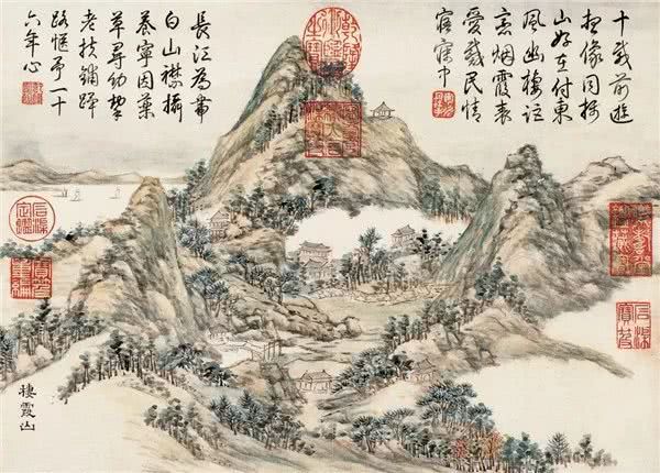 1780年,乾隆皇帝第五次南巡,在三月二十六日到达江宁行宫之后,拿出了随身携带的《金陵十景图册》,这件描绘南京“栖霞山”一带旖旎风光的佳构,是五年前乾隆重臣董诰所进献,虽然董诰进呈乾隆的书画颇多,但这件始终是乾隆受到珍藏、反复把玩的至宝。
