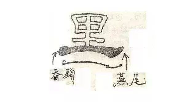 蚕头燕尾,隶书常见笔法。起笔凝重,结笔轻疾。