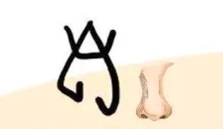 “自”,一个假借字。“自”本来是“鼻”的象形字,后来因为“鼻”的发音与“自”一致,故假借为“自”。假借字,即假借已有的音同或音近的字,来代表所想表达的字。