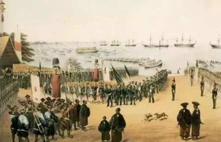 “黑船来袭”:1853年,美国东印度舰队出现在扼守江户湾要冲的浦贺近海,用武力威胁日本“打开国门”。
