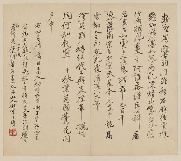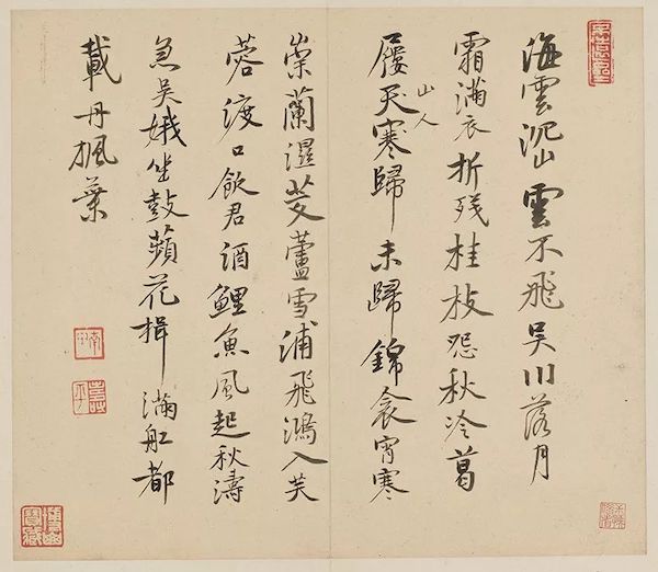 恽寿平(1633—1690),原名格,字寿平,后以字行,改字正叔,号南田,武进(今江苏常州)人,为“清初六大家”之一。擅画花卉、山水,书法亦冠绝一时。此册为恽寿平诗文集,多有为王翚所书,并有重要画论。其内容对研究恽寿平有着重要价值,应是他当时自抄的稿本。恽寿平书法清俊秀逸,深得王献之、褚遂良书法神韵,称作“南田体”,却常被他的绘画与诗文成就所掩,其身后书风随着没骨花广为流行。此册用笔圆润秀婉,点画精美多变,结字起伏跌宕。其高洁脱俗之气溢于楮墨之间。此册为首次进入书法馆常规展陈列。