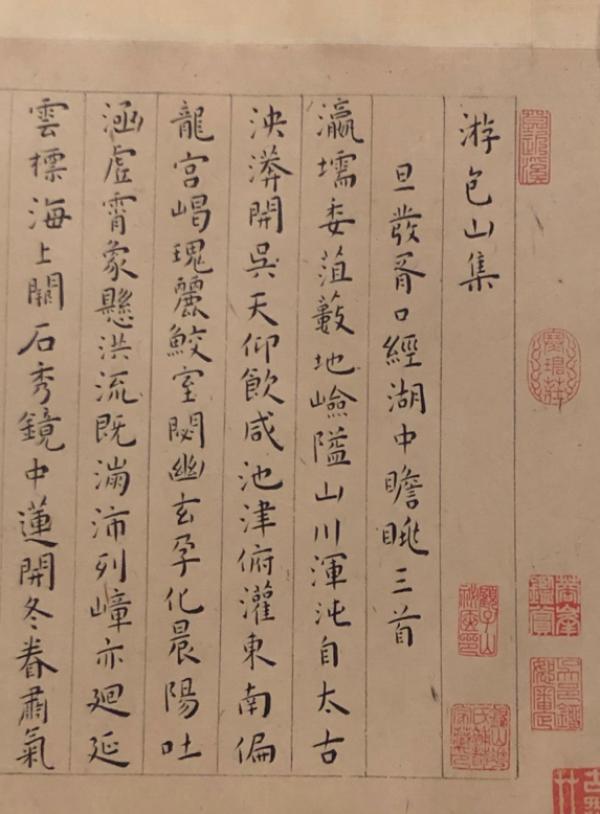 1520年,王宠游昆陵包山,曾任游诗数首,结为《包山集》。1526年冬,王宠过鸿溪宿友人补菴居士处,居士几他索书。第二年(1527年),他便将八年前游包山所作的游诗用小楷抄录了二十二首寄给了补菴居士。他的朋友文嘉在居士处见到这卷小楷后,称之为“天才妙绝”。后人普遍认为《游包山集》是王宠的小楷代表作,然刘九庵先生认为此作或非王宠所作,即便如此,此卷楷书运笔精到,字形大小参差有致,古拙中自得妍巧,气韵超逸,婉丽遒媚,不失为小楷临习的优秀范本。宋苏轼曾说:“大字难于结密而无间,小字难于宽绰而有余。”王氏这卷《游包山集》,其结体“宽绰而有余”,其书风旷适疏宕,遒媚飘逸,谓上乘之作言而不虚。