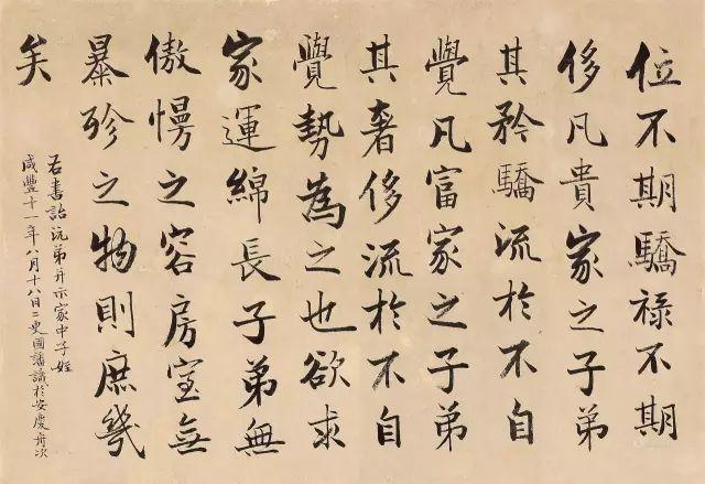 虽然他自己评价自己,作字的功夫比之于古文和诗,用功最浅,到晚岁时才有介入处,但他发誓以楷书写日记为终身不间断的三件事之一,真就坚持用楷书或行书写日记、书信以及奏稿和批复对下属的呈文。他从道光十九年(1839)正月到同治十一年(1872)去世前,写下了近130万字的《日记》,可称是一部罕见的书法巨制。