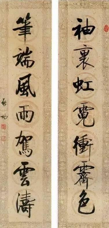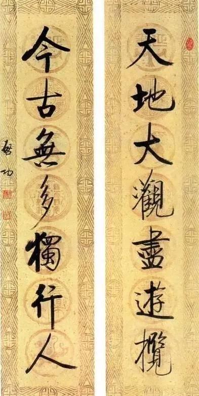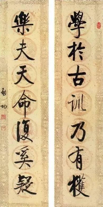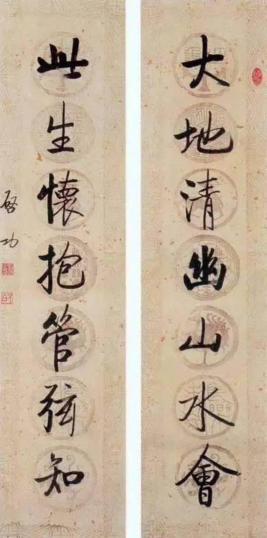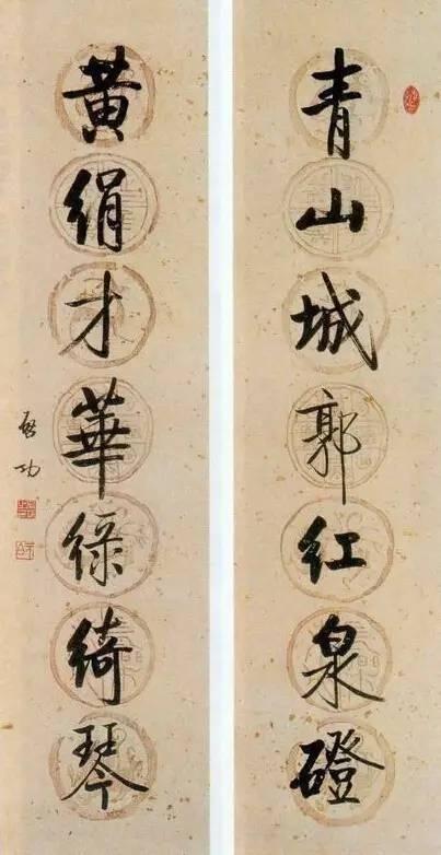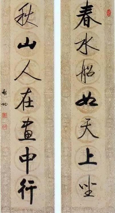 (注:配图均为启功行书七言联)
