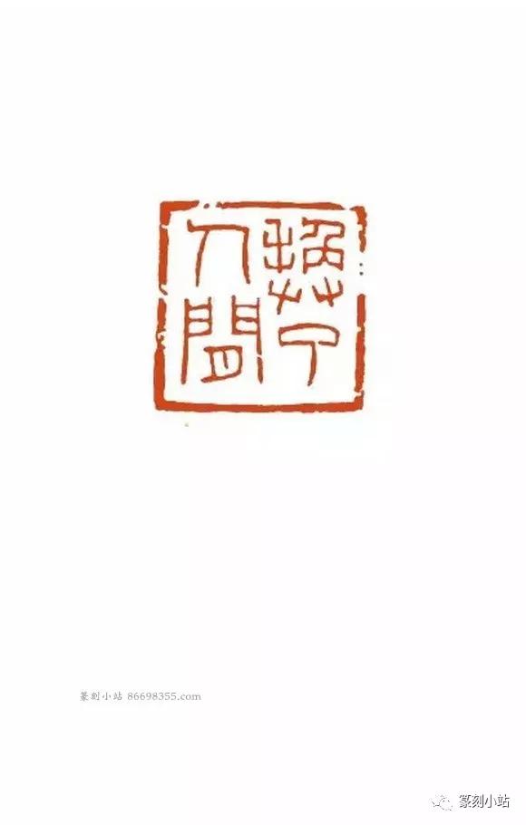 朱复戡书法四体皆精, 而以大篆、 草书成就最高。篆刻初受吴昌硕指导, 后规矩秦汉, 上溯两周。其印风浑厚古穆, 直入周秦两汉, 得三代神韵, 独开宗派, 驰骋当时。边款风格多样, 图文并用, 精美绝伦。晚年创“篆印” , 以纸代石, 运笔如刀, 或以篆的手法表现刻的韵味, 独具特色。