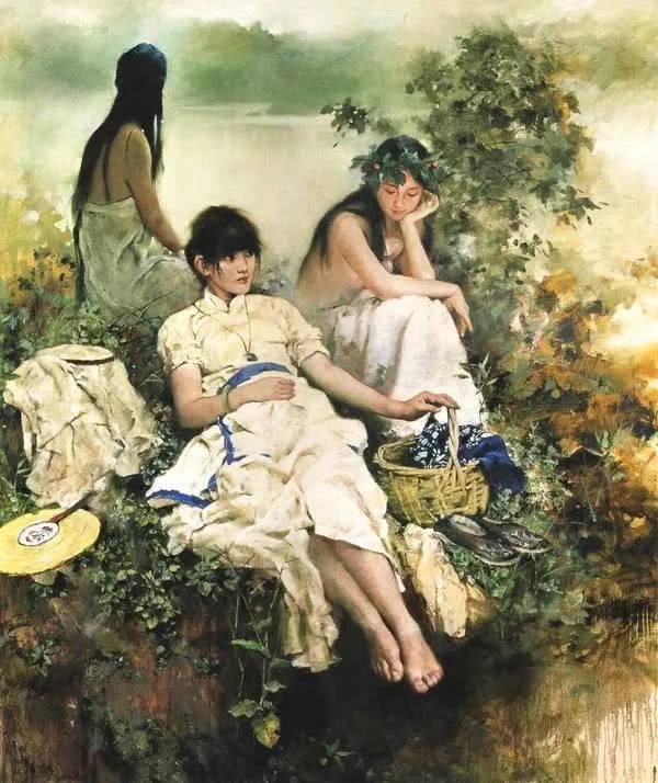 大家不妨参照文中的这些作品,这些全都是潘鸿海先生的画作。画中的风景浪漫唯美、清新自然,不仅具有油画的视觉冲击,也带有浓浓的水乡神韵。可见,潘鸿海先生的境界,已然能将国画和油画完美融合,相得益彰。潘鸿海先生用西方油画语言表现东方景色神韵的创新,确实开启了一个流派。所有的突破和创新,自成一格,相较陈逸飞先生的大家闺秀,潘鸿海先生的画作,更有小家碧玉的风韵。而这种感受,在潘鸿海先生为18岁的周迅创作的人体画中,更能凸显。大家不妨参照下图。