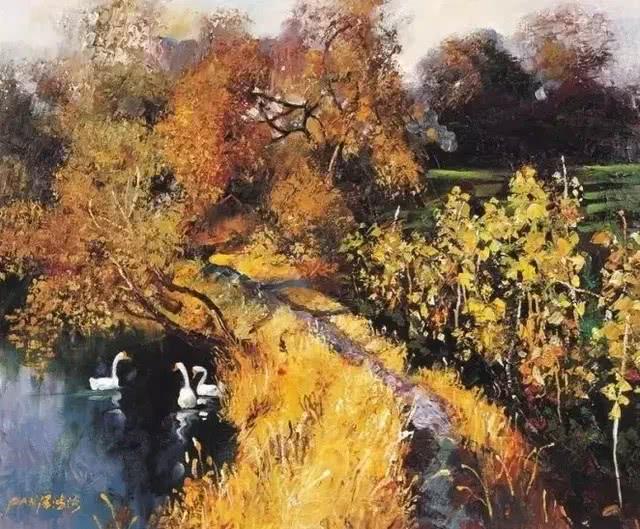 其次,江南的秀色,早已在许多经典国画中被无数次呈现。此刻,潘鸿海先生想用油画的方式来再现,自然需要面对更多的挑战。但是这些都无法挡住潘鸿海的步伐,一如他自己所言:“我得到了启迪,我要做一个中国的油画家。一个成功的画家一定是画自己最熟悉的题材。所以,我要坚持画江南。”