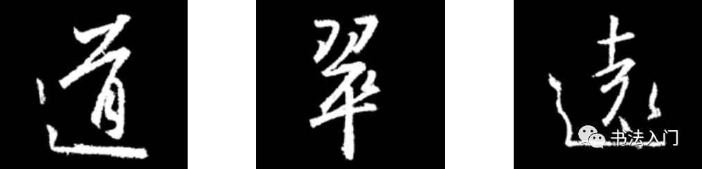 《圣教序》的“道”、“翠”、“远”诸字也都是通过这样幅度较大的拆动拉张来激活空间,使空间产生扩散膨胀的视觉震撼力,“恒”、“岂”等字的折摆则幅度小而均匀稳定,形成紧敛之态。请看下面的字例: