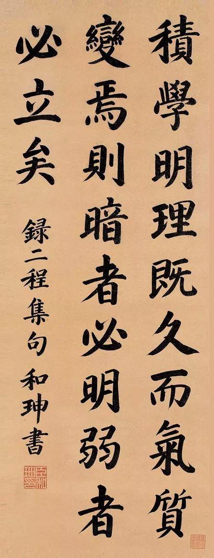 和珅楷书立轴《积学明理》,尺寸:98×36cm