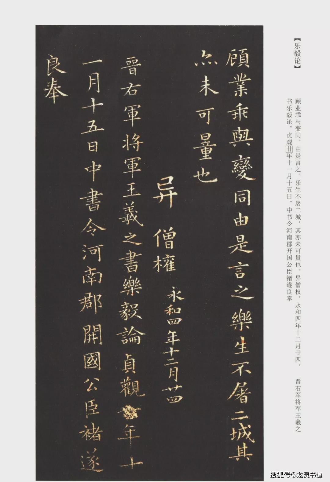 【8】顾业乖与变同,由是言之,乐生之不屠二城,其亦未可量也。异僧权,永和四年十二月廿四。晋右将军王羲之书《乐毅论》。贞观廿年十一月十五日,中书令河南郡开国公臣褚遂良奉