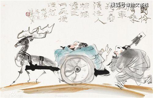 刘伶对人情世故漠不关心,平日里只和阮籍、嵇康相交,一旦遇上了就一边把盏共饮,一边游历山水。他常常坐着鹿车,带上一壶酒,然后雇一个人跟着自己,嘱咐道:我醉死了就把我埋了。他还时常幕天席地就长醉不醒,或是在家里光着膀子喝酒,有人笑他,刘伶便回敬以“我以天地为栋宇,屋室为裈衣,诸君何为入我裈中?”的豪言。无论是生死还是礼法,刘伶不羁地将这一切都置之度外。