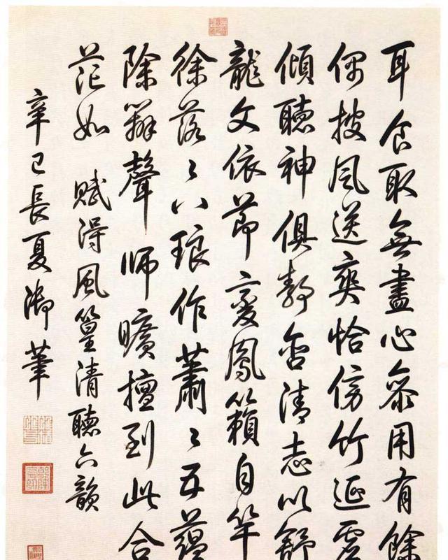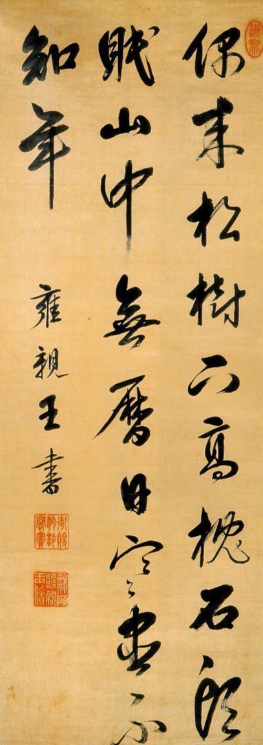 雍正的书法也是学董其昌,在经历了漫长的临写摹仿的初学阶段,即位时已进入成熟阶段,书法总体表现畅朗娴熟、文雅遒劲,在气势上要略胜康熙一筹。
