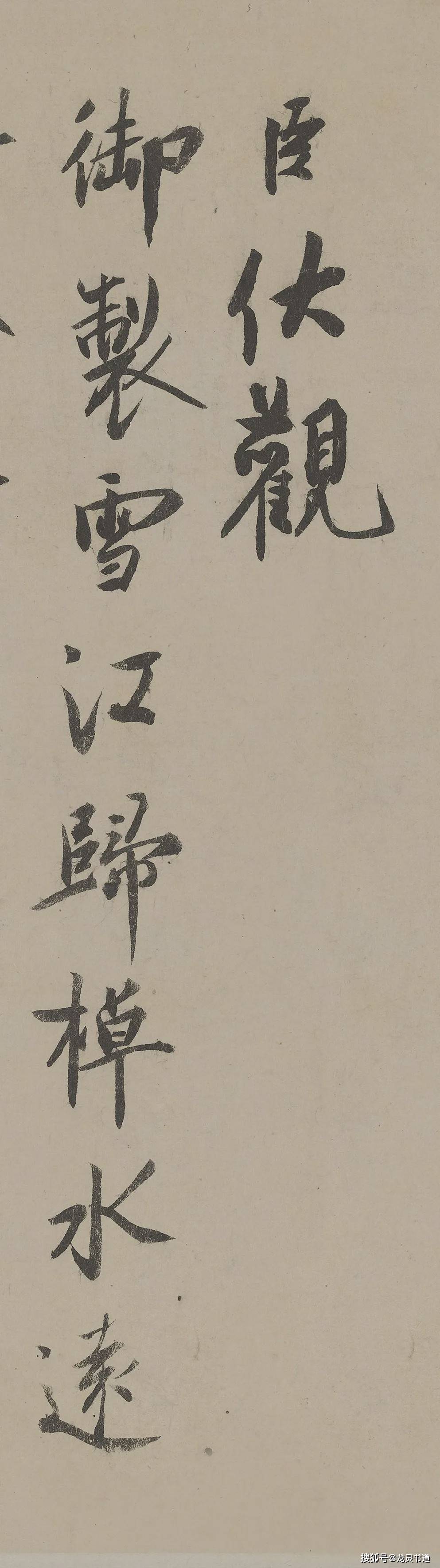 此帖为蔡京行书题跋《雪江归棹图卷》,现藏于北京故宫博物院。《雪江归棹图卷》为赵佶即宋徽宗绘寒江两岸的雪景,极富层层深入、峰回路转之情趣。是一幅描绘冬日雪景的山水画。而蔡京书法造诣颇深,其书法艺术有姿媚豪健、痛快沉着的特点,能体现宋代“尚意”的书法美学情趣。
