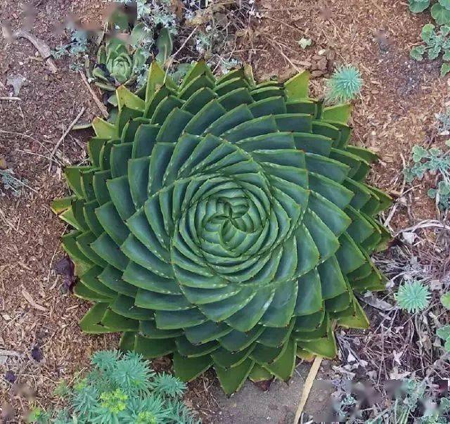 多叶芦荟的叶子紧密地按逆时针(或顺时针)方向螺旋,通常有五层螺旋,每层都排列成一个均匀的圆形,和植株整体形状相同。