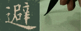 使字体结构的疏密、险易、远近,彼此变化得当,映带合宜。例如作撇,“肌”字的左为出锋撇,右边撇就要写成回锋撇,避免雷同,“府”宇的长撇已经向下,短撇就应向左,使其有所变化。再如作捺,“颇”字的皮捺要缩短,就叫作避;“昶”字的永捺伸长,则称为就。另如平钩,“鸠”字的钩收当是避,“馗”字的钩展出则是就。还如“逢”字的下边拔出,则上边必作一点,也是避重叠而就简径的缘故。