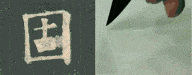 对于包围结构的字,内部须要充满,不宜多留空白,然而又忌点画分散,免与外围相逼,采取疏密匀称,大小适宜为佳。例如“圆、圃、图、国、回、包、南、隔、目、四、勾”等字,均须用此法布置。