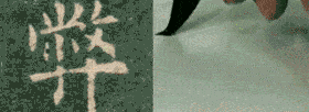 字体形态,有的则须挑拗,使偏侧之势达到整体平衡,某种笔画就要伸展。例如“戈、弋、武、九、气”之类的字,应当用纵戈纵腕法,运笔适宜于劲健,避免弯曲力败。又如“献、励、散、断”之类的字,左边堆垛既然较多,须得右边拗之,再如“省、炙”等字,上面偏侧须得下边拗之,使其均衡相称为佳。