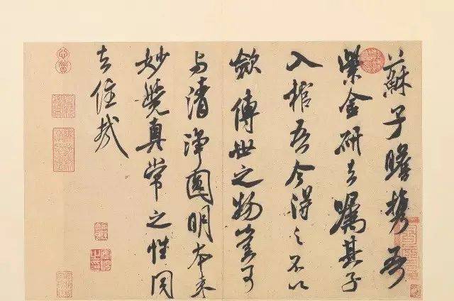 作为一个敏感的艺术家,米芾的艺术情感是丰富热烈的,艺术判断是独到精深的,有时候理性的表达,不足以发,则单刀直入,出以狂言,固然不能人人赞同,但遇逢赏者,自可相视无逆,会心一笑。