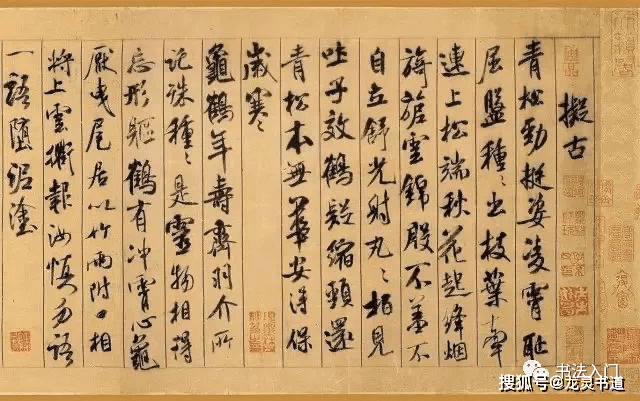 欢迎关注微信公众号“龙灵书道”免费学习海量书法视频行书的章法较楷书的章法复杂得多,行书可分为字字独立的行书,如《兰亭》、《韭花帖》等,典型的是《韭花帖》,由于字距行距较大,使人视觉易于集中到单字上来,这类行书追求单字内的完美,字的大小变化含蓄,字与字之间呼应含蓄,行轴线变化不大,这类行书有静气,更为灵空平淡;另一类是夹杂草书、字的大小变化比较大的行草书,如《祭侄稿》、《箧中帖》等。