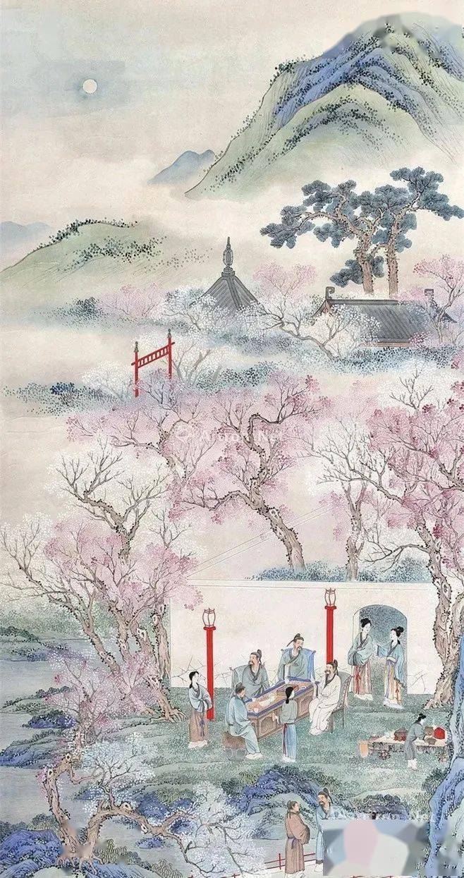 远处高楼上,官宦贵族们还在尽情地享受着歌舞管乐,架设著秋千的庭院正沉浸在幽寂茫茫的夜色中。