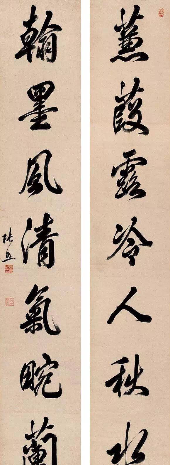 馆阁体是一种古代科举考试的专用书法字体,它最初形成以明代的“台阁体”,由台阁体发展而来,明代的台阁体书法以“二沈”沈度、沈粲二兄弟为代表。张照行书对联