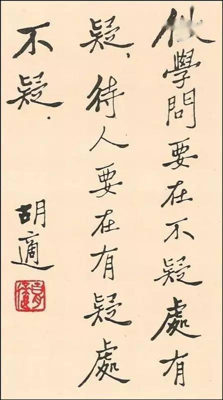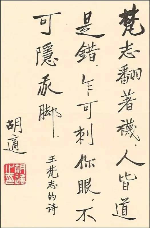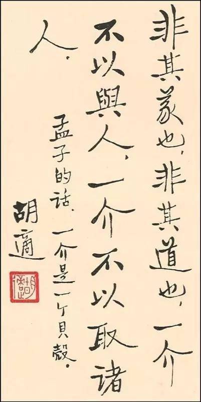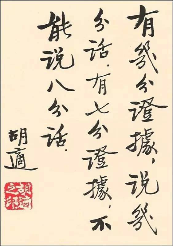 胡适(1891—1962),汉族,安徽绩溪人。胡适书法是典型的学者书法,学者书法的特征是文雅、含蓄、隽永、流畅,无雕琢气、造作气、浮躁气和江湖气,学者书法很少注重对线条的单纯锤炼,而更为重视内在的气韵和整体的表现力。在胡适所遗留下来的书法笔迹当中,其表现形式多为信札、小品,而很少有厅堂式巨作,也很少有用于应酬或人际交往的所谓的书法创作。从胡适手稿的笔迹上看,我们很难看出胡适书法的师承渊源和所属流派,但是,从整体上看,胡适显然有着较深厚的书法功底,尤其是他对魏晋小楷及唐楷的临习功夫尤为到家,且能化之。