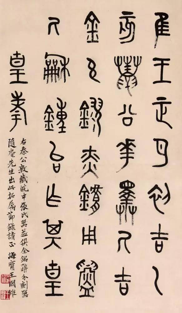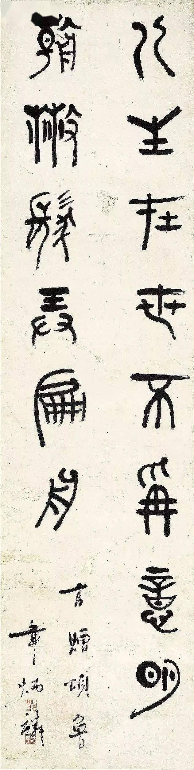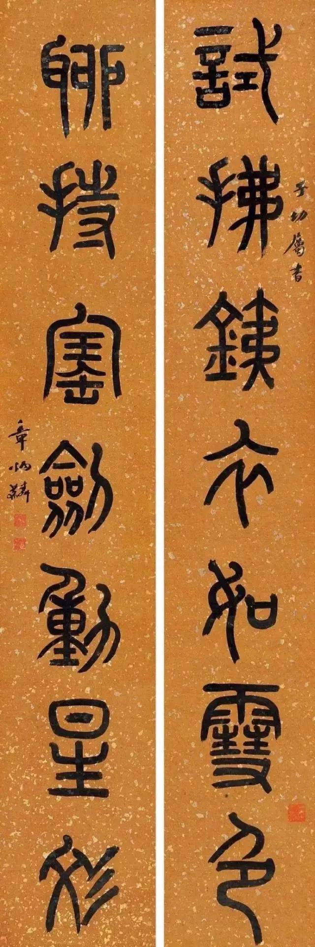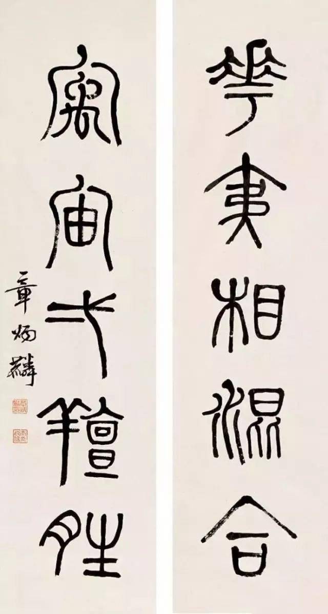 章太炎(1869-1936),原名学乘,字枚叔(以纪念汉代辞赋家枚乘),后易名为炳麟。其书法尤擅篆书,不是单纯追求字型趣味,而是讲究字字合六法,笔笔有本源,朴茂古雅为人所称道。