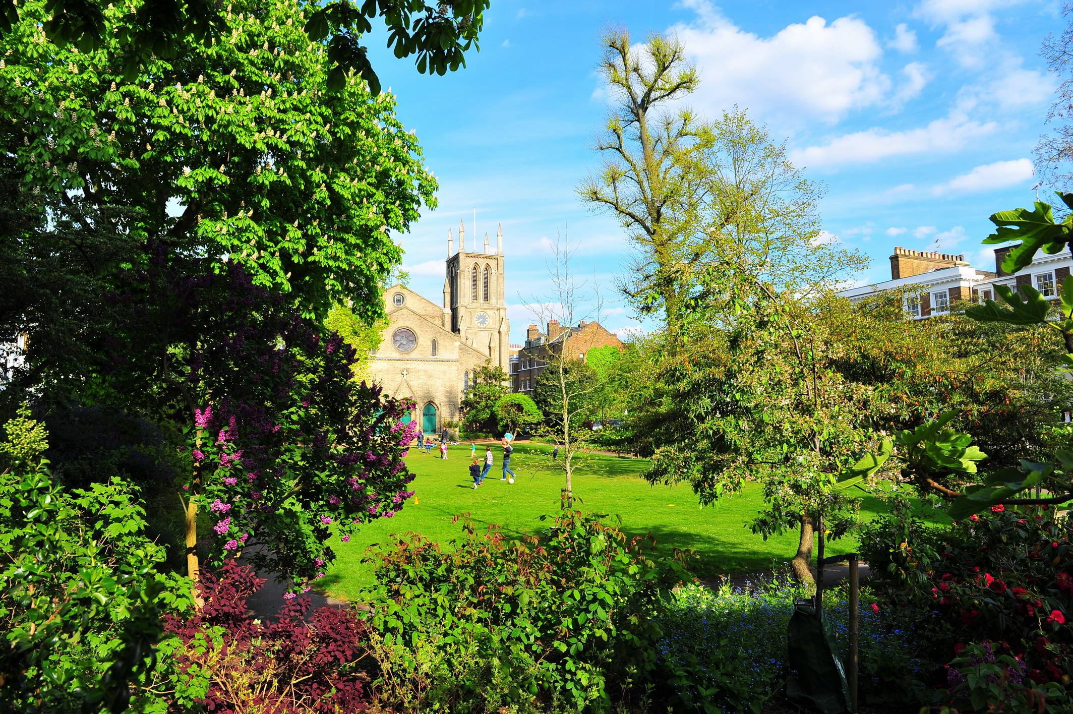 我逛名人故居时有个习惯,就是会特意想象如果自己是故居的主人,推开房门,走下台阶,眼前看到的是什么景色。当老舍刚刚搬进来时,正是略显寒意的英伦四月,大衣毛衣是脱不得的。可花儿似乎不顾及伦敦的寒冷,早已竞相开放。当年这个时候,老舍眼前的圣詹姆斯花园,也应是玫瑰、郁金香、绣球争相斗艳,一派生机盎然之色。难怪他会在《二马》里感喟:“伦敦真有点奇怪,热闹的地方是真热闹,清静的地方是真清静。”这种体悟,大概就源自他在此地居住的体验。圣詹姆斯花园多为文人、艺术家和商界人士居住,虽然离商业枢纽牛津街很近,但它周边却安静得如同一个独立的世界。时至今日,我们眼前仍极少见到路人,车辆也稀少得很。安静的楼宇和碧绿的草坪,加之静寂的空气与温暖的阳光,想来就是老舍小说里赞叹的那种“安适太平的景象”。