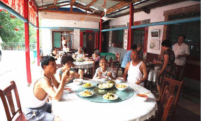 上图为中国一家很普通的农家乐,几位中国人在吃饭