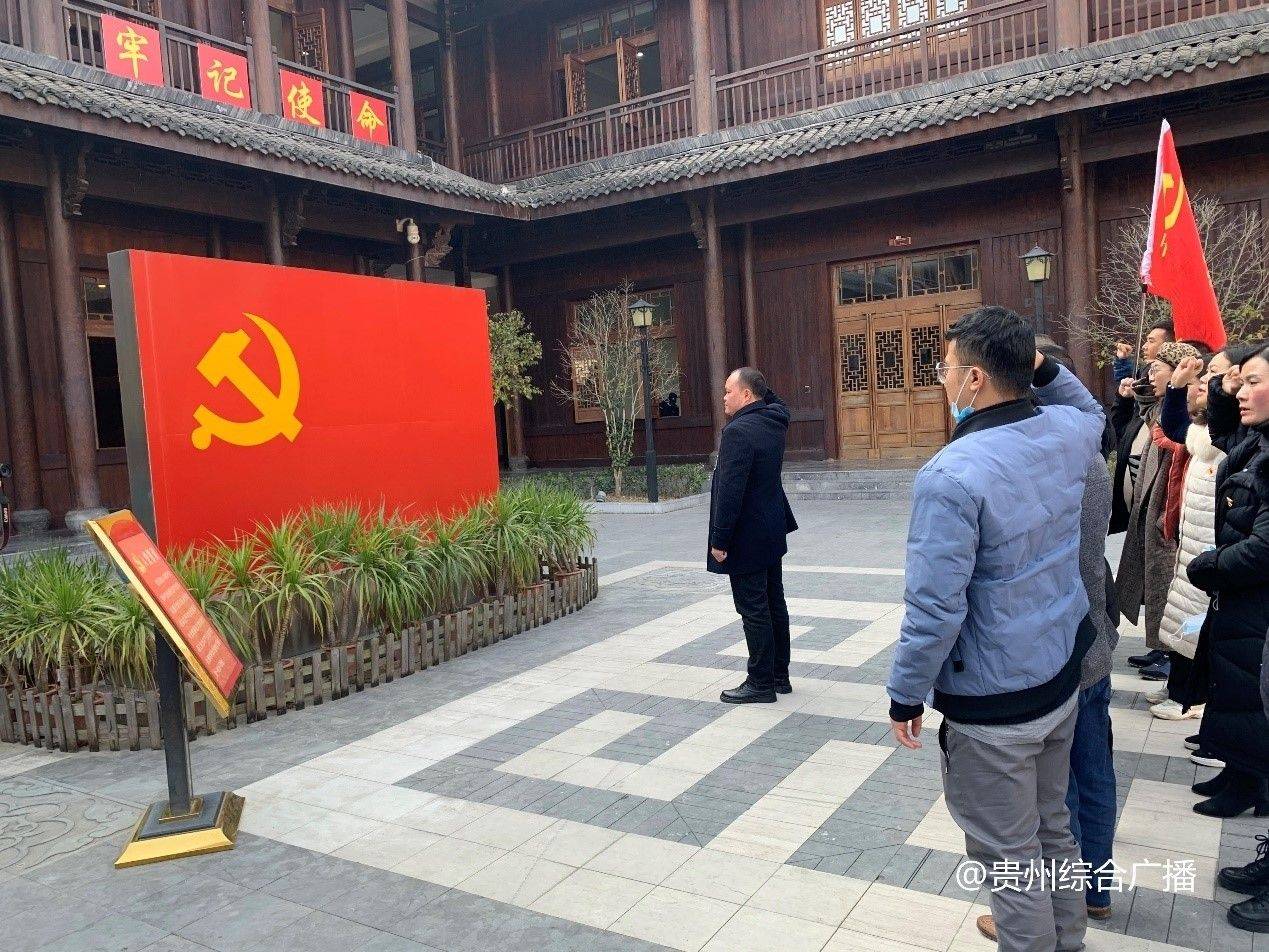 老榕树旁,荔波县第四小学老师带着学生们前来邓恩铭故居参观学习。面对鲜红的党旗和邓恩铭烈士的塑像,铿锵的入党誓词又一次响起……