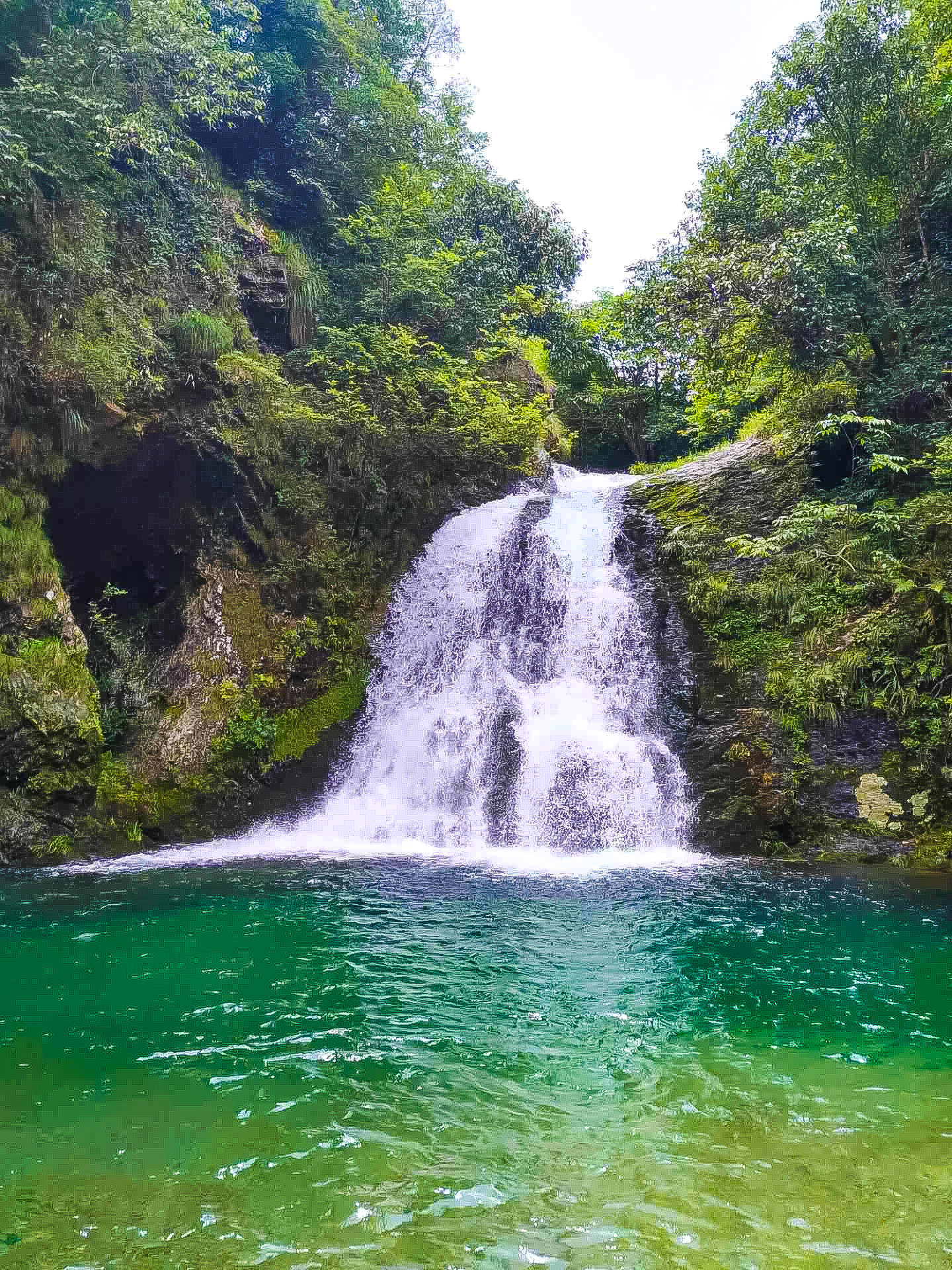 从打鼓村下来后,从村口的田间小路再走过几个弯弯的山路就算是正式进入景区了,打鼓岭非常的原生态环保,没过度的改造,看起来野性十足,如果景区再来点拓展项目的话,那正好就可以配的上野性这个词,景区内的瀑布不少,基本上走一截就能看到,还有这里的水很是清澈,真的是那种清澈见底的样子,瀑布下方的潭水不浅,但都能直观水底。