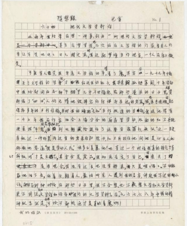 巴金的手稿