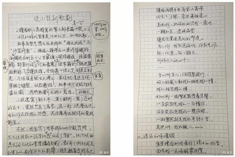 莫言的手稿