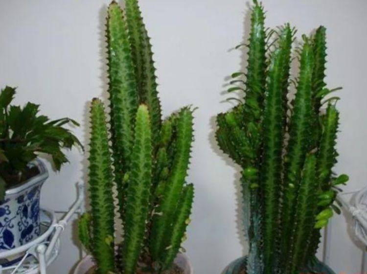 龙骨花整个植株都是肉质的,造型威武霸气、高大挺拔,盆栽种植可以长到2~3米高。它既喜光又耐阴,既能摆放在阳台和户外,又可以养在室内较阴暗的地方。龙骨花全身都可以储蓄水分,即使1个月不浇水,对它也没有任何影响。