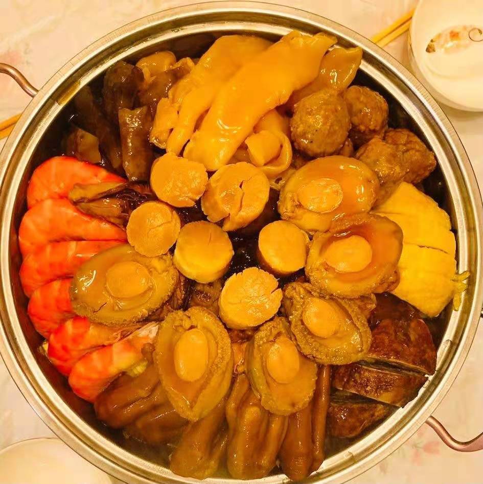 港星任达华的年夜饭是海鲜盆菜,让我们领略到了浓浓的广东菜港菜风格。别看只有一盆,但是满满一盆的食材不是一般人能吃得起,里面整整齐齐码放着鲍鱼、瑶柱、鹅掌、花胶、海参、蚝豉等食材,这些食材都是价格不菲,难怪网友们都说任达华家的年夜饭最富有。