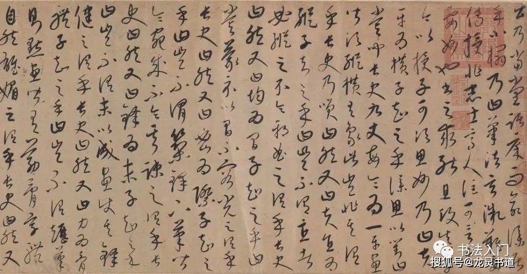 章草从用笔上看,虽然继承了隶书的某些特点,如明显的波磔,但它不全像隶书。我们知道,典型的隶书强调逆人的蚕头,而不是直接顺势而入。