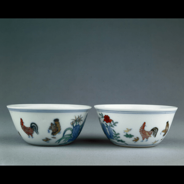 最早载有明代成化斗彩鸡缸杯价值的明代万历《神宗实录》中写道:“神宗时尚食,御前有成化彩鸡缸杯一双,值钱十万。”明代万历沈德符《野获编》中称:“成窑酒杯,每对至博银百金。”其中十万之值与白银百金相近,“值钱十万”应指鸡缸杯的价值等于当时流通用的铜制十万枚制钱。