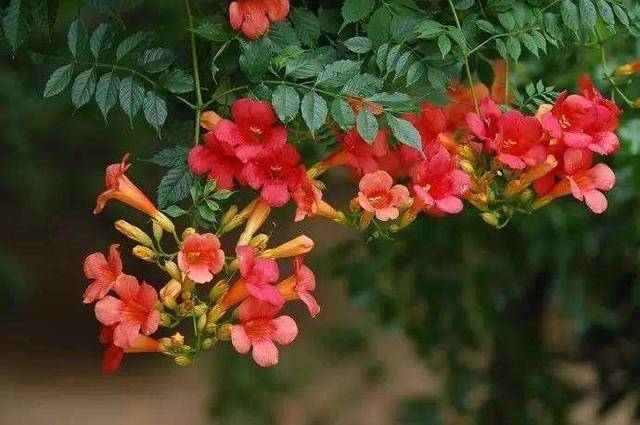 这是一种非常喜庆的红色花朵,现在都叫它凌霄花,是一种栽培历史悠久的花卉植物。在诗经里面使用最多的就是用来象征青春年华以及爱情,带给人非常多的美好。