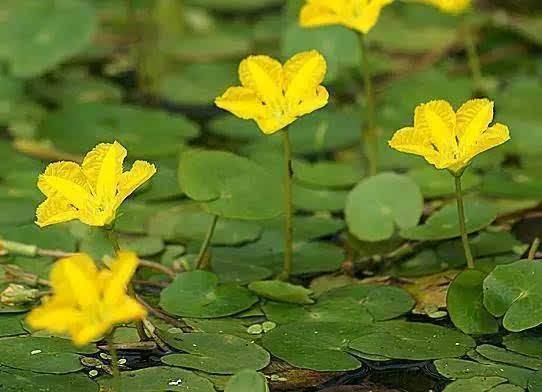 这种植物通常长在水里,叶片圆圆的,很像是迷你版的荷叶,漂浮在水上面十分可爱。它的生长力很强,一长就能长出一大片,格外茂盛。而且它还会开出一朵朵黄色的小花,挺立在叶片之上,显得小巧精致。