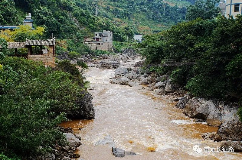 普渡河铁索桥在头哨村村旁的普渡河上(下图)。桥的全长46米,始建于1928年。